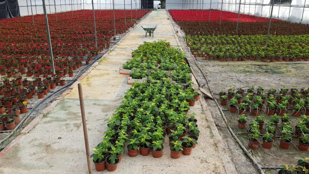 Las flores de Pascua, el mayor porcentaje de color rojo, también están acompañadas de otras de colores diversos como amarillas o blancas, y se espera que empiecen a ser colocadas en el próximo mes de diciembre cuando estas hayan alcanzado su plenitud y máxima belleza.