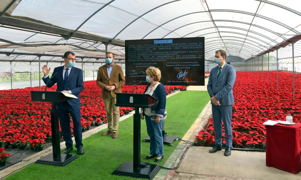 “Trabajar por la salud de los murcianos y la sostenibilidad medioambiental es una prioridad para el Ayuntamiento de Murcia. Con este convenio, invertimos en medio ambiente para mejorar la calidad de vida de los murcianos, y lo hacemos a través de la inserción laboral de personas con discapacidad, que producirán las plantas de los jardines del municipio”.